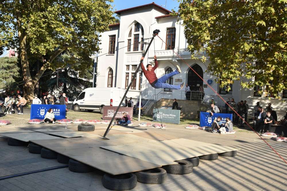 Bursa Büyükşehir Belediyesi ile Institut Français Türkiye-İstanbul Şubesi'nin düzenlediği sokak gösterisinde, Fransız sirk sanatçısı Nicola Freso yer aldı